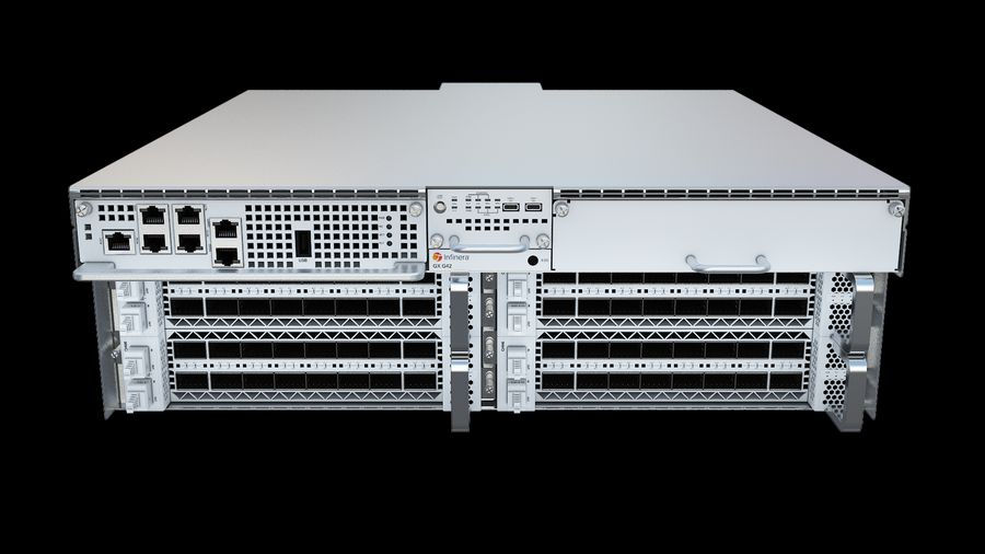 The GX G42 compact modular optical platform is equipped with four service slots in a 3RU, 600-mm-deep ETSI-compliant form factor. This carrier-grade platform offers full NEBS Level 3 compliance, redundant controllers, multi-chassis management, and many other features. It offers high capacity and low power consumption in a compact footprint, leveraging NOKIA's 1.6T (2 x 800G per wavelength) sixth-generation Infinite Capacity Engine (ICE6) and 2.4T (2 x 1.2T per wavelength) seventh-generation Infinite Capacity Engine (ICE7). The GX G42 supports 200G to 1.2T line transponders and 10G to 800G client interfaces, and is perfectly suited for CSPs, ICPs, and many other network operators that require high-capacity networking.